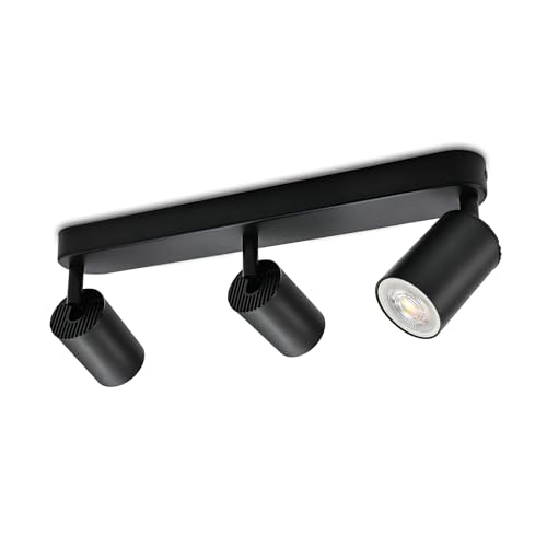 KYOTECH Plafonnier LED GU10 3 Spots Orientables Spot Plafond GU10 Applique Plafond Interieur Pivotants Applique murale LED Noir,livré sans ampoules