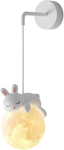 SEMANHUA Applique murale câblée for chambre d'enfant, 3D, boule de lune, chambre à coucher, animaux de dessin animé mignons, lapin, panda, ours, lampe de chevet nordique à intensité variable(Rabbit)