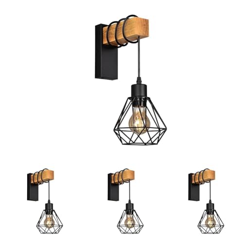 B·LED BARCELONA LED Applique murale vintage avec 1 ampoule design industriel, lampe rétro en acier et bois, blanc, marron, culot E27 LM135-N_FBM Noir (Lot de 4)