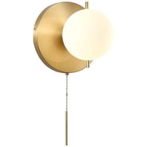 CVGBFDGYJN Applique Murale Boule de Verre avec Interrupteur à Cordon, Lampe de Chevet, Globe d'intérieur Nordique, Base polie en Or, Base de Lampe Edison E27 pour entrée de pièce intéressante