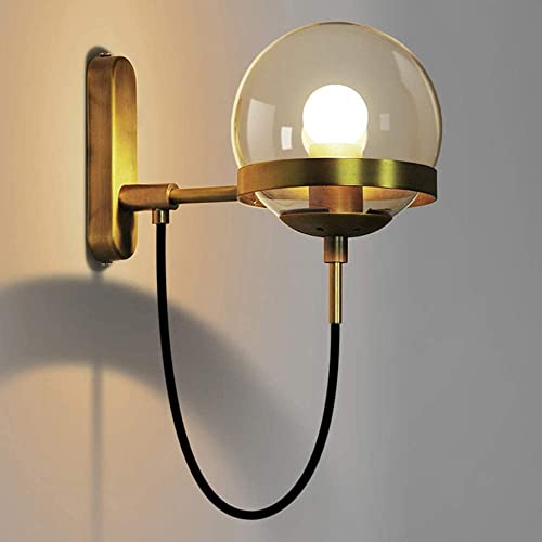 KXQYIKYI Applique Murale Appliques Murales Abat-Jour en Verre Rond en Fer Forgé Applique Murale Boule de Verre Décorative pour Salon Chambre Couloir Couloir Escaliers Hall