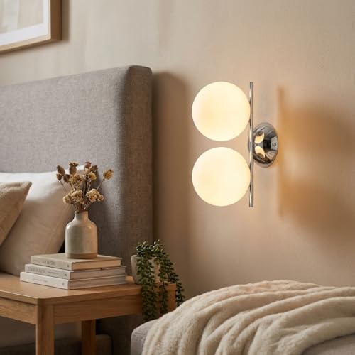 BARCELONA LED Applique murale Dupla Boule de verre Ø15cm E27 Moderne Nordique Industrielle Luminaire Mural Quarto Cabeceira, Métal chromé Prateado, Illuminação Intérieur Salle Couloir Escades