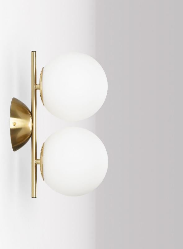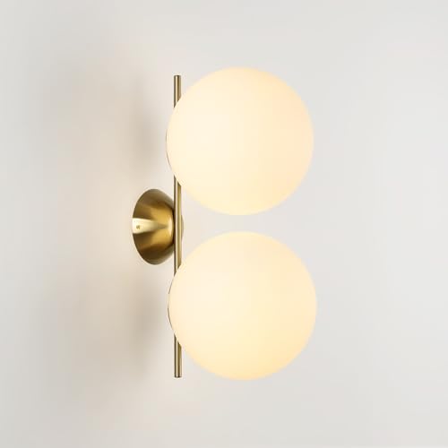 B·LED BARCELONA LED Applique murale d'intérieur VIC 220 – Applique murale moderne avec double boule en verre opale. Douille E27 40 W – Applique dorée minimaliste pour chambre, couloir, salon.