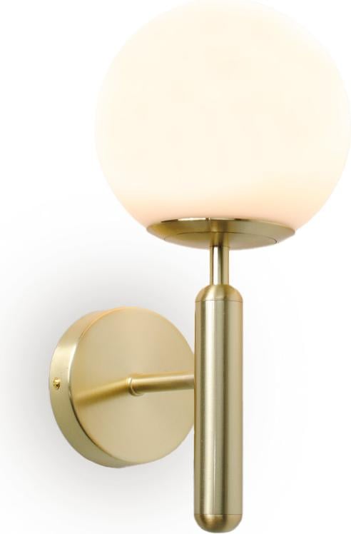 Applique murale, boule en verre opale et support doré, douille E27, idéale pour la chambre à coucher, le salon et l'entrée