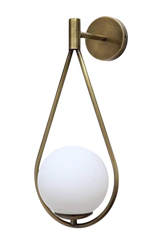 EKSED Applique murale en boule de verre blanc de 150 mm, globe en verre blanc avec applique murale à base en laiton doré (Or)
