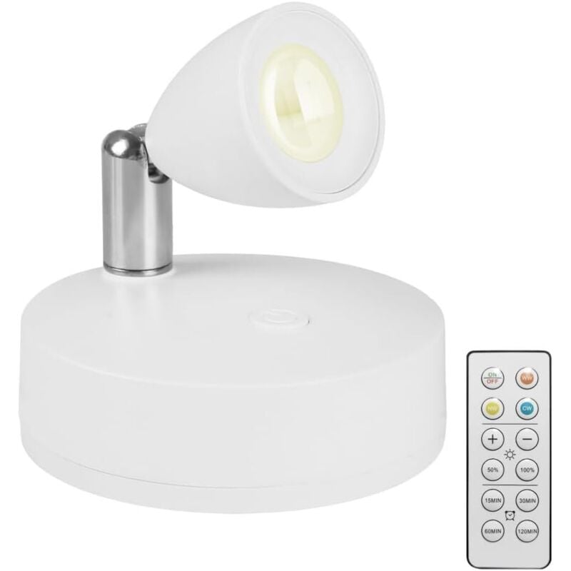 Projecteur LED Sans Fil, Spot Magnétique/Adhésif avec Télécommande, 3 Couleurs, Applique Murale Réglable pour Chevet Lisant Affichage d'art
