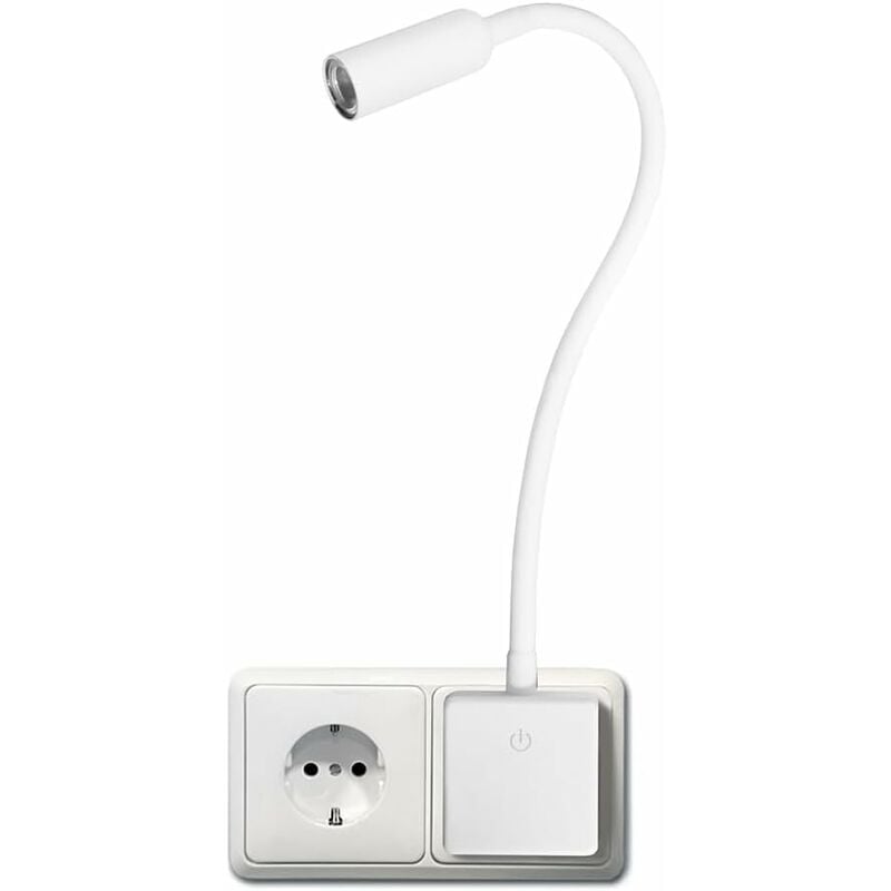 Lampe de Applique Murale Chambre Chevet de Lecture led Flexible Blanc avec Prise de Courant, Interrupteur Tactile Dimmable Luminosité 4W 240Lm,