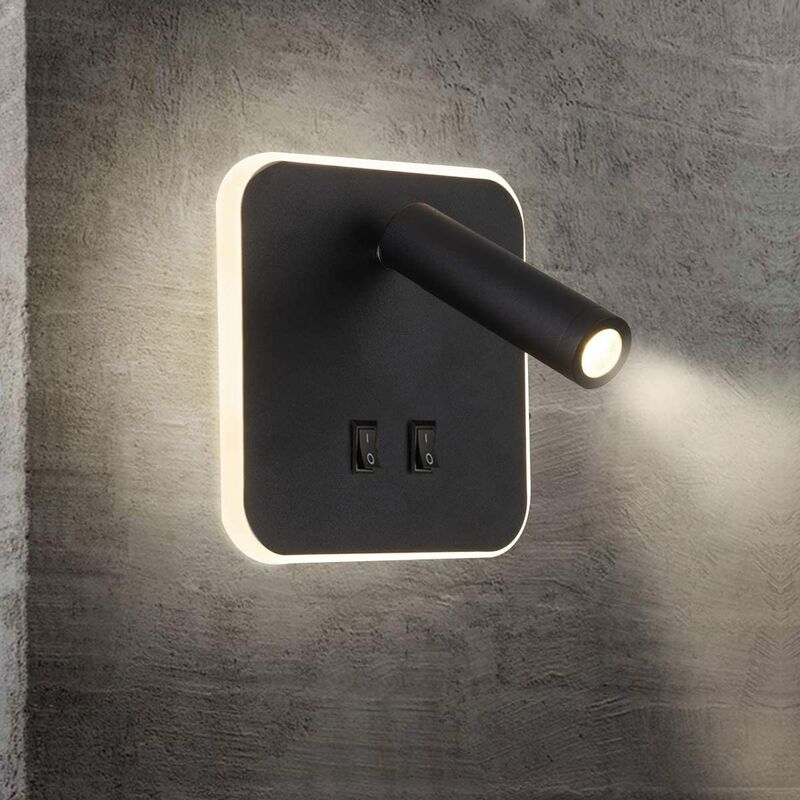 Applique murale LED pour chevet, éclairage d'intérieur d'hôtel, lampe de chevet, lampe de couloir avec interrupteur, noir, 3 W + 10 W (carré)
