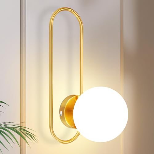 ZMH Applique Murale Couloir Intérieur Verre Chambre Éclairage Mural Doré Moderne Lampe de Couloir E14 Boule de Verre Rétro Éclairage Mural pour Escalier Lit Salon (sans ampoule)