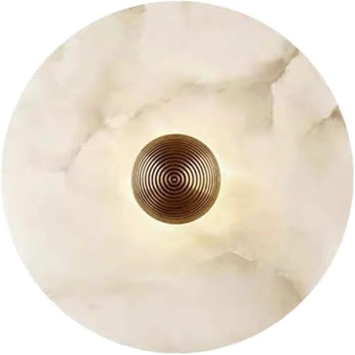 MOCHAMIK Appliques murales Appliques murales 12W LED Applique Murale en marbre Naturel Applique Murale en albâtre Applique Murale en Pierre Lampe de vanité Ronde Escaliers Base en métal (30 cm)