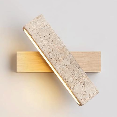 DUANWEN Applique Murale Vintage Avec Abat-jour En Bois Et Pierre. Applique Murale En Pierre De Travertin Naturel. Applique Murale Moderne À LED. Pour Chambre À Coucher, Salon, Cuisine, Ferme, Couloir,