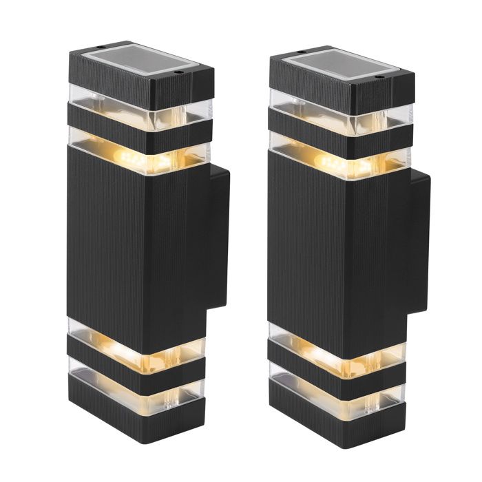VOANZO Lot de 2 Lampes solaires pour clôture, Applique Murale d'extérieur, Lampe Solaire de Jardin, Applique Murale d'extérieur, Noire, étanche, pour Porte d'entrée, clôture, Patio