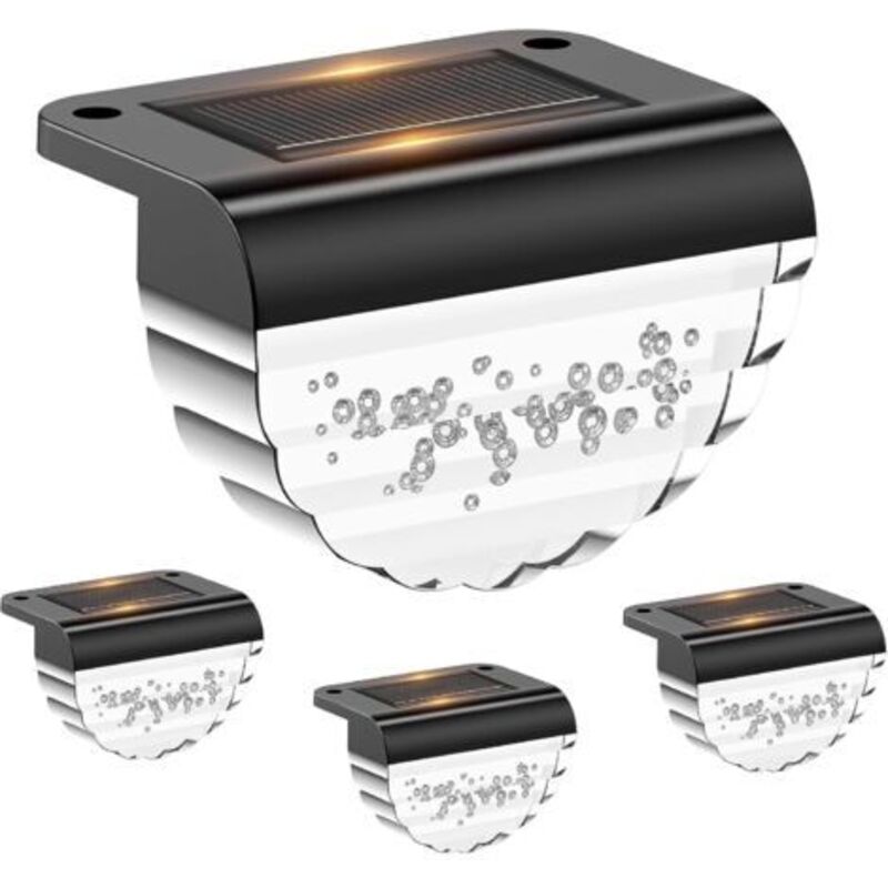 Lot de 4 lampes solaires étanches pour balcon - Décoration de jardin - Applique murale d'extérieur pour terrasse, jardin et marches - Blanc chaud