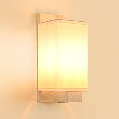 Gleonlux Applique Murale Intérieur Vintage, Applique Murale Bois Industrielle E14, Lampe Murale Rétro abat-jour en tissu, Appliques pour Chambre Couloir Salon Escalier, Ampoule Non Incluse, Rectangle