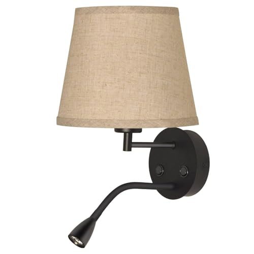 BarcelonaLED Applique murale LED E27 avec lampe de lecture orientable flexible 3 W Écran textile Interrupteur pour chambre, tête de lit, salon