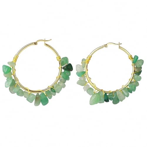 Applique murale en pierre naturelle, boucles d'oreilles en perles de cristal, perles de couleur or, boucle d'oreille enveloppée de fil pour femmes, bijoux de déclaration, lumière de fête