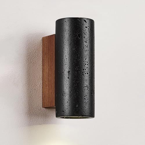 KKXXYQFC Appliques murales Applique cylindrique noire Applique murale en pierre naturelle Applique murale en bois Appliques câblées Éclairage mural E27 Appliques murales pour chambre à coucher Couloir