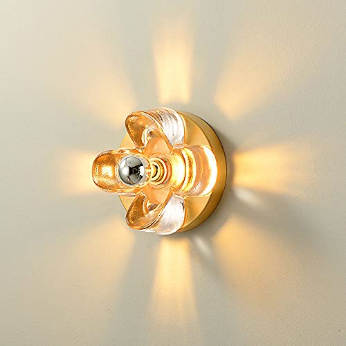 CAFIEDR Applique Murale en Laiton, luminaire de Plafond Moderne, Lampe de Chevet 1 lumière avec Abat-Jour en Verre, Applique Murale pour Couloir, Cuisine, Chambre, Salon - Base Ronde