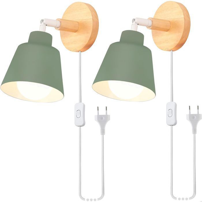 iDEGU 2x Rétro Lampe Murale IntérieurModerne Applique Murale Industriel avec Prise et Interrupteur Réglable Luminaire VintageVert