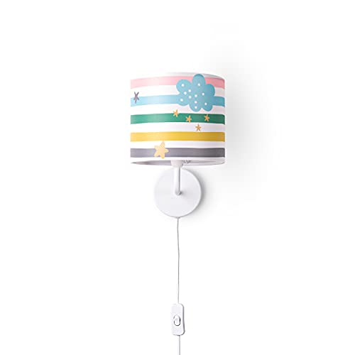 Paco Home Lampe de chevet Chambre Lampe de table Applique murale Chambre E14 Check Rainbow avec prise, Couleur:Design 4 (Ø18 cm), Type de luminaire___Couleur:Lampe murale - Blanc