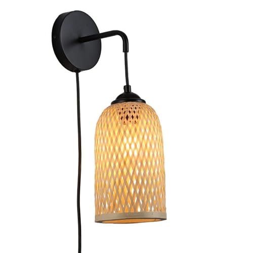 B·LED BARCELONA LED Applique murale avec prise en osier bambou rotin avec câble interrupteur culot E27 pour lumière intérieure table de chevet salon chambre LM164-P