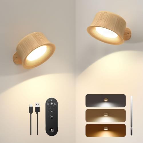 Applique murale, Appliques murales, appliques murales à piles nordiques à LED avec télécommande, lampe d'intérieur sans fil à intensité variable réglable Compatible with éclairage de chambre, décorati