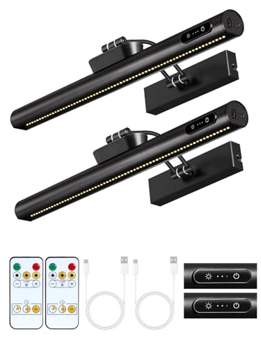 HONWELL Lampe d'image sans fil avec télécommande, tête d'éclairage LED rotative avec minuterie, applique murale à intensité variable pour peinture d'image, affichage d'illustration
