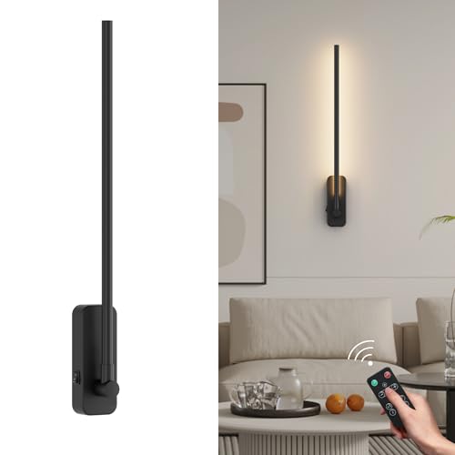 XRR Applique Murale Interieur LED, Lampe Murale avec Télécommande à Gradation et Batterie Rechargeable Lampe de Chevet Chambre Sans Fil 360° Liseuse Lampe Pour Salon, Chambre, Escalier(noir)