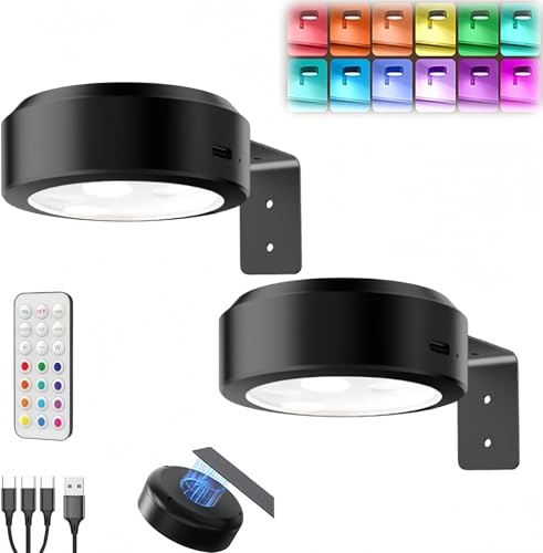 EDISHINE 2 Pcs Applique Murale Intérieure, Télécommande & E27 Ampoule Dimmable et Rechargeable Incluses, 3000K/4500K/6000K, 12 RGB Couleurs, Lampe Murale sans Fil pour Salon, Chambre