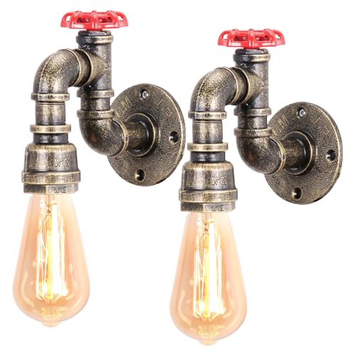 iDEGU Lot de 2 Applique Murale Industrielle, Vintage Lampe Murale Style de Tuyau Rétro Art Déco Lampe de Mur pour Bar Cuisine Restaurant Café Couloir (Bronze, Robinet H)