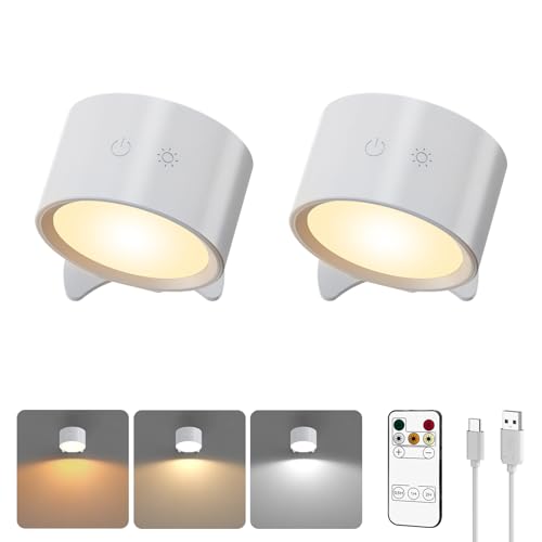 Smiling Shark Lampe Murale Intérieure F9, Applique LED Intérieure Rechargeable avec Télécommande 3 Températures & 4 Luminosité Tactiles 360° Rotation Lampes Murales pour Salon Chambre, Blanc 2 Pièces