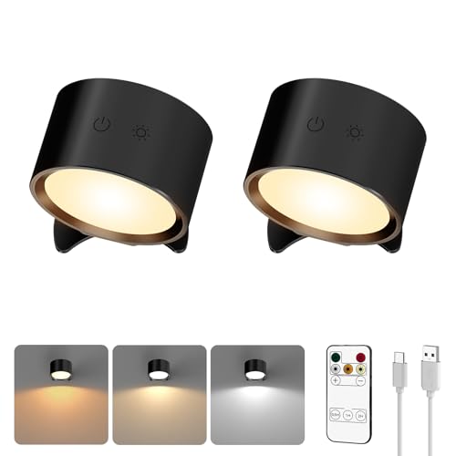 Smiling Shark Lampe Murale Intérieure F9, Applique LED Intérieure Rechargeable avec Télécommande 3 Températures & 4 Luminosité Tactiles 360° Rotation Lampes Murales pour Salon Chambre, Noir 2 Pièces