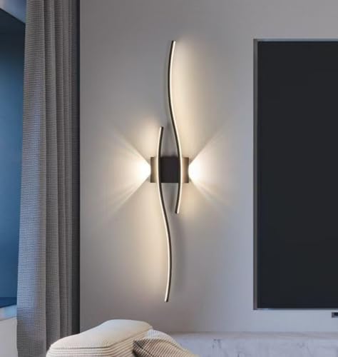 AstrizLamp longue Applique Murale Salon LED Design Incurvé Up/Down Lampe Murale Noir Moderne 3-Couleur Dimmable Creative Line Luminaire Mural Acryliquel pour Chambre Salon Couloir Salle à Manger 80cm