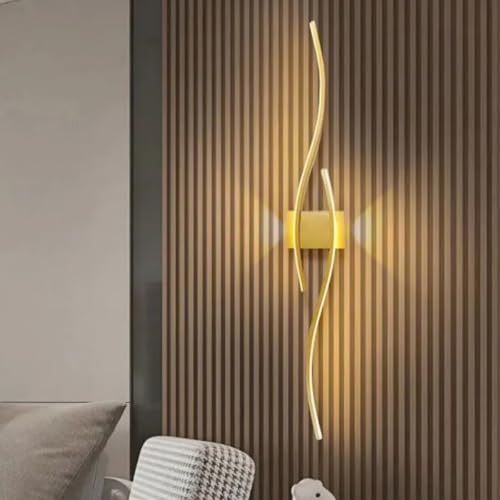 longue Applique Murale Salon LED Design Incurvé Up/Down Lampe Murale Doré Moderne 3-Couleur Dimmable Creative Line Luminaire Mural Acryliquel pour Chambre Salon Couloir Salle à Manger 100cm