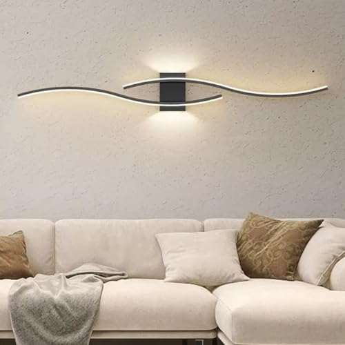 longue Applique Murale Salon LED Design Incurvé Up/Down Lampe Murale Noir Moderne 3-Couleur Dimmable Creative Line Luminaire Mural Acryliquel pour Chambre Salon Couloir Salle à Manger 120cm