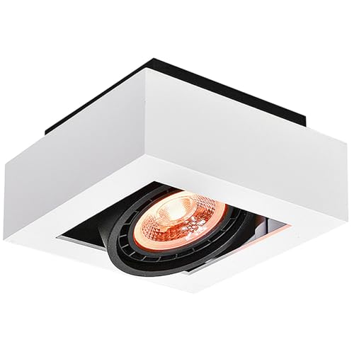 GTV LOID Spot de plafond 1 lumière - Applique murale carrée orientable en métal blanc avec anneau noir intérieur, culot GU10 ES111, design moderne IP20 idéal pour salon, cuisine, bureau ou hôtel