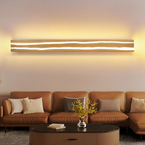 ZMH Lampe murale LED Applique murale en bois - 16 W Lampe de couloir Intérieur 100 CM Blanc chaudd'escalier Moderne salon Design Chambre à coucher Éclairage Salon