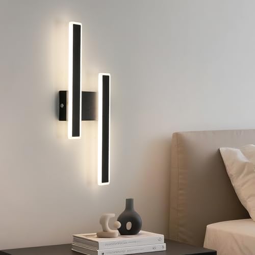 Comely 22W 2500LM Applique Murale Interieur LED, Noir Lampe LED Murale Design Moderne, Lampe Murale Interieur pour Chambre, Salon, Couloir, Escalier, Lumière Neutre 4500K