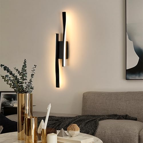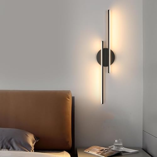 Comely Applique Murale Intérieure LED, 24W Noir Lampe Murale Moderne Lignes Simples Design, 3000K Lumière Chaude Luminaire Mural Interieur en Acrylique pour Chambre, Salon, Couloir, Escalier