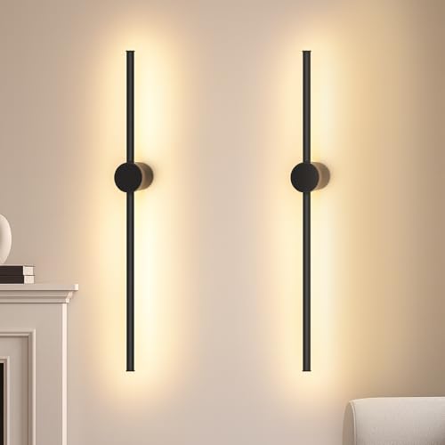 ZMH 2 PAR LED Applique murale Intérieure - 100 CM Noir Moderne Lampe de couloir Pivotante Design Lampe d'escalier Indirecte Blanc chaud Éclairage mural Salon Chambre Couloir Cage d'escalier Lit