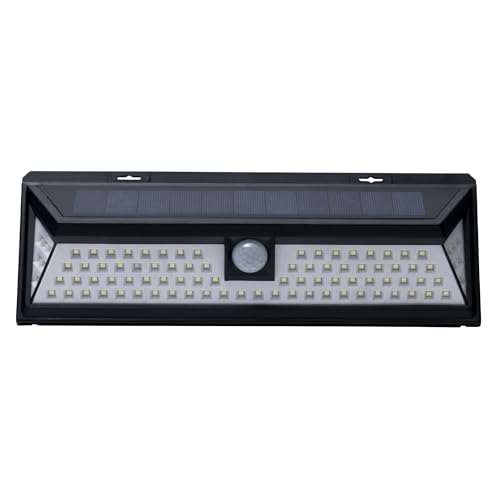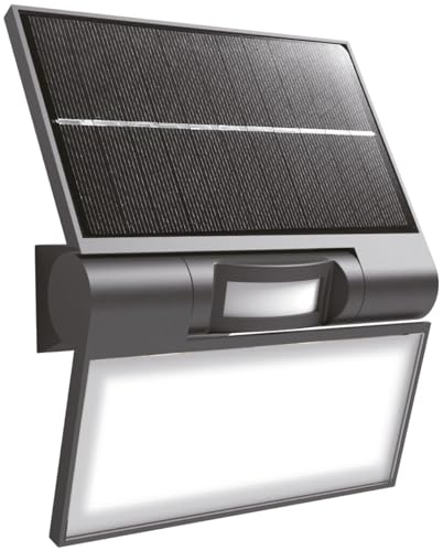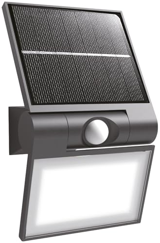REV LUMUS 120 Lampe d'extérieur avec détecteur de mouvement, lampe solaire, applique murale, lampe d'extérieur, 200 lm, 3000 K, 2 W, IP65, noir