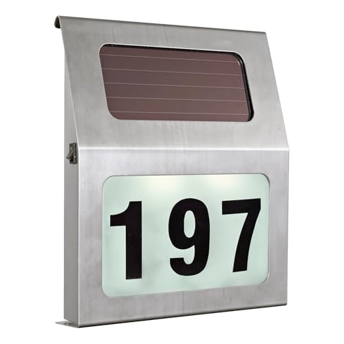 Eglo Applique murale extérieure solaire Orimini, lampe LED d'extérieur avec numéro de maison, acier inoxydable, lumière blanche neutre, IP44