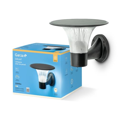 Garza - Applique murale solaire LED d'extérieur 2200lm, 360º, effet étoile - détecteur de mouvement, 2 tons (3000K/4000K), IP65, couverture 80m², fixation murale.