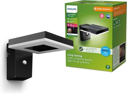 Philips Yarixa, Applique murale solaire d'extérieur, 2,2 W, 2700 K, noire, détecteur de mouvement, IP44 résistante aux intempéries