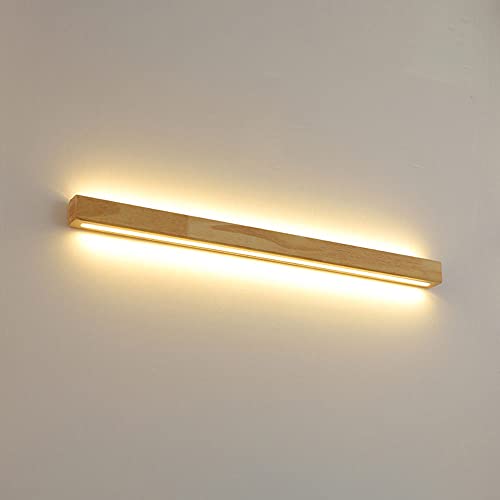RXPVUXE Applique murale linéaire en bois longue applique murale à LED lampe de vanité de salle de bain moderne, luminaire mural en bois haut vers le bas appliques déco de chevet Wabi Sbai pour chambre