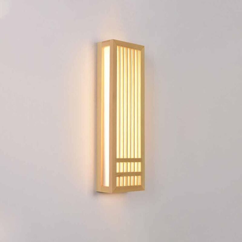 Mjsdjof Applique murale rétro japonaise, applique murale en bois rectangulaire créative avec abat-jour en acrylique, appliques murales de chevet simples personnalisées, appliques murales d'éclairage d