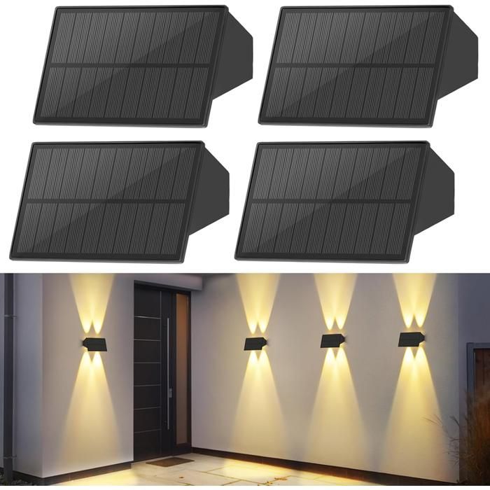 Lampes solaires d'extérieur de haut en bas,lampes solaires de clôture d'extérieur, 4 pièces LED appliques murales extérieures solaires de haut en bas, Spots solaires imperméables de paysage, lampe ext