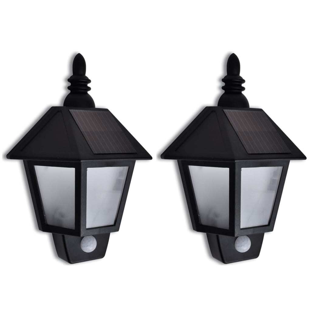 vidaXL Appliques solaires avec détecteur de mouvement 2 pcs - Applique murale extérieure - Appliques murales extérieures - Applique murale