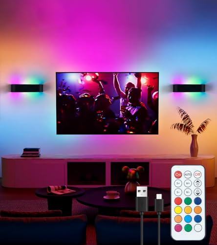 SURPALIG Lot de 2 appliques murales LED sans prise de courant - 6000 mAh - RVB - 16 couleurs - Intensité variable avec télécommande - Pour décoration de chambre et décoration de jeu