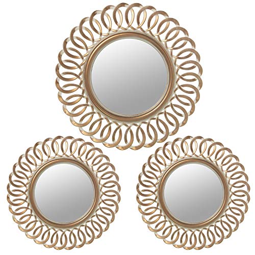 DRW Lot de 3 Appliques murales en mélamine avec Miroir en Blanc 2 de 25 cm, 13 cm, 1 de 35 cm extérieur et 18 cm intérieur